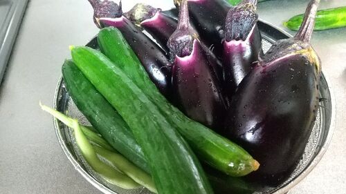 旦那がせっせと世話をしている畑の ナスときゅうり マンゴーみたいな立派なナス ナスフライにしたり、 ナスとひき肉のキーマカレーにしたり 煮浸しナスのそうめんにしたり… 出来れば火を使いたくはないのだがね ナスを生で食べる方法は漬物くらいしか 思い付…